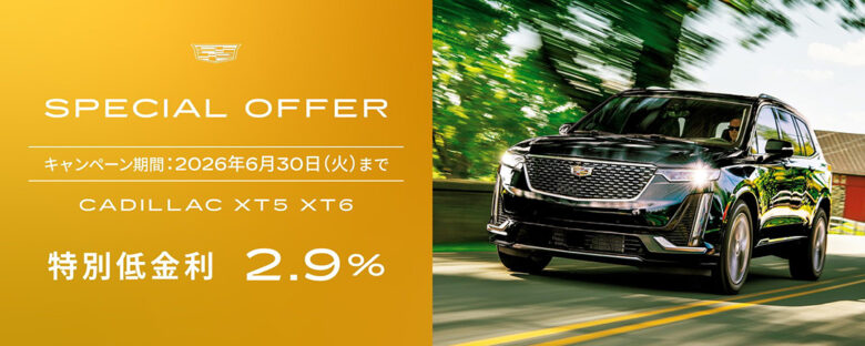 2026年4月1日〜6月30日の期間中、対象車種を新車でご成約かつご登録いただいたお客様に限り、XT5XT62.9%の特別低金利でご購入いただけます。