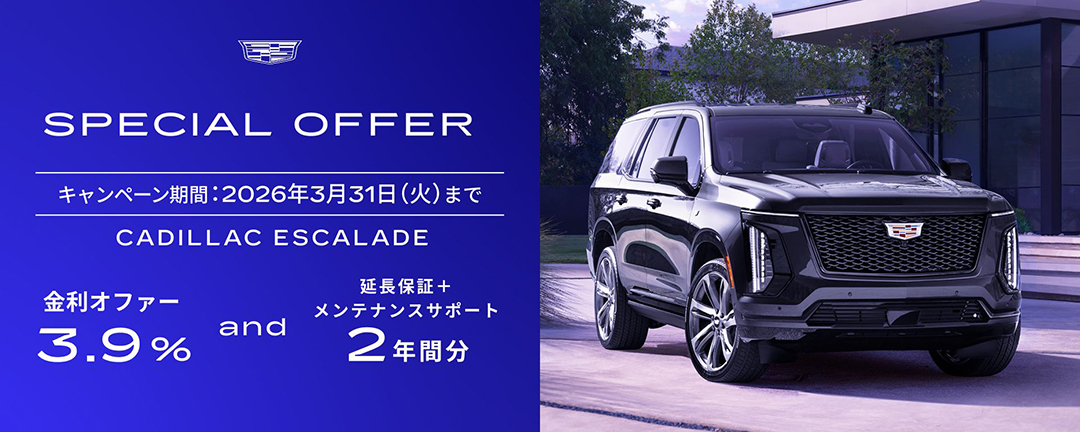[期間:3/31まで] キャデラック エスカレード 3.9% 金利オファー and 延長保証+メンテナンスサポート2年間分 プレゼント